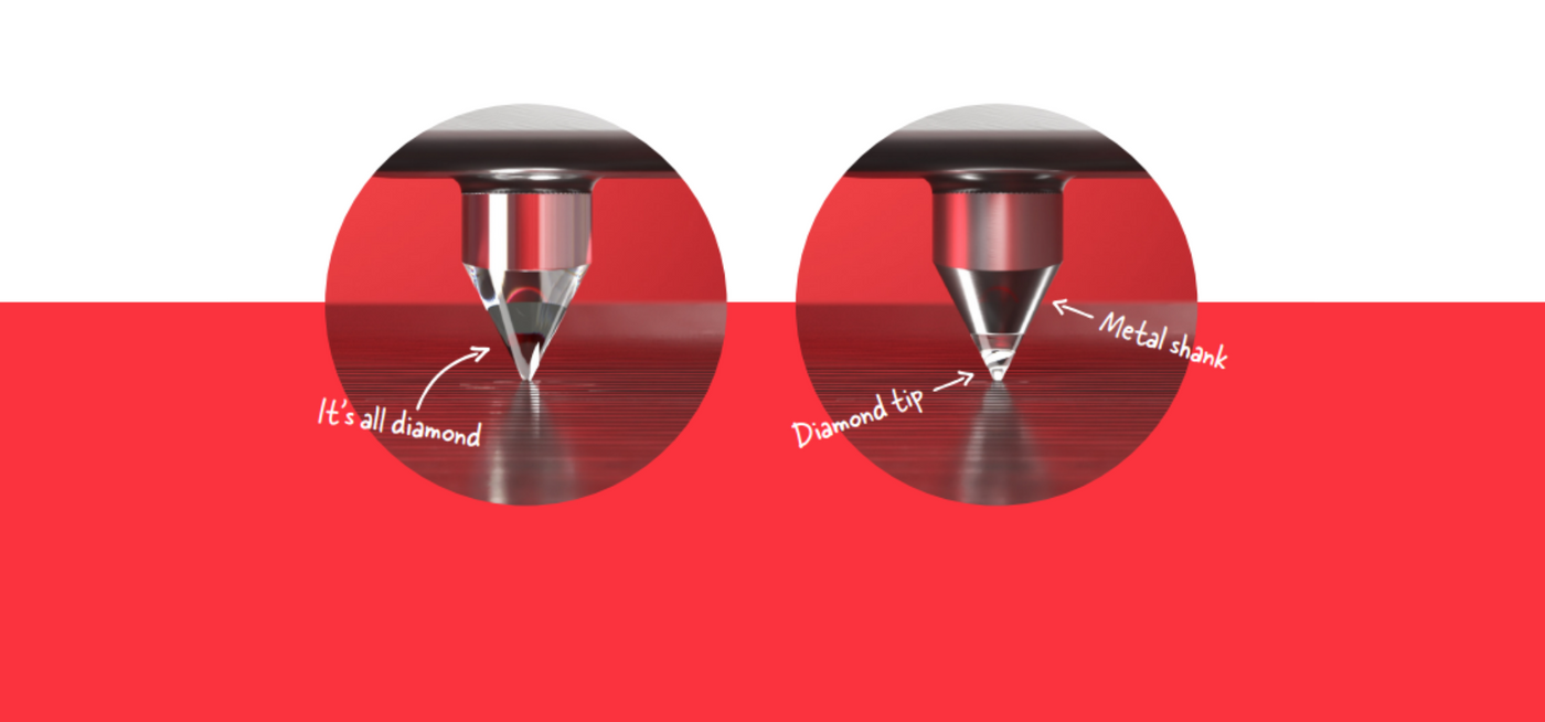 Le terme "diamant" est souvent utilisé en référence aux cellules phono car la pointe du diamant—la partie qui est en contact avec les sillons d'un disque vinyle—est généralement fabriquée en diamant. Cela est dû à l'exceptionnelle dureté et durabilité du diamant, qui lui permettent de conserver son tranchant et sa forme au fil du temps. Un diamant durable et aiguisé est essentiel pour suivre avec précision les minuscules sillons des disques vinyles sans causer d'usure excessive.